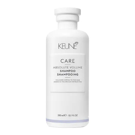 Sampon cu efect de volum pentru parul fin sau subtire Keune Care Absolute Volume, 300 ml. Un sampon bland ce ofera volum parul fin fara sa-l incarce.Provitamina B5 si proteinele din grau fortifica si ingroasa fibra capilara.
